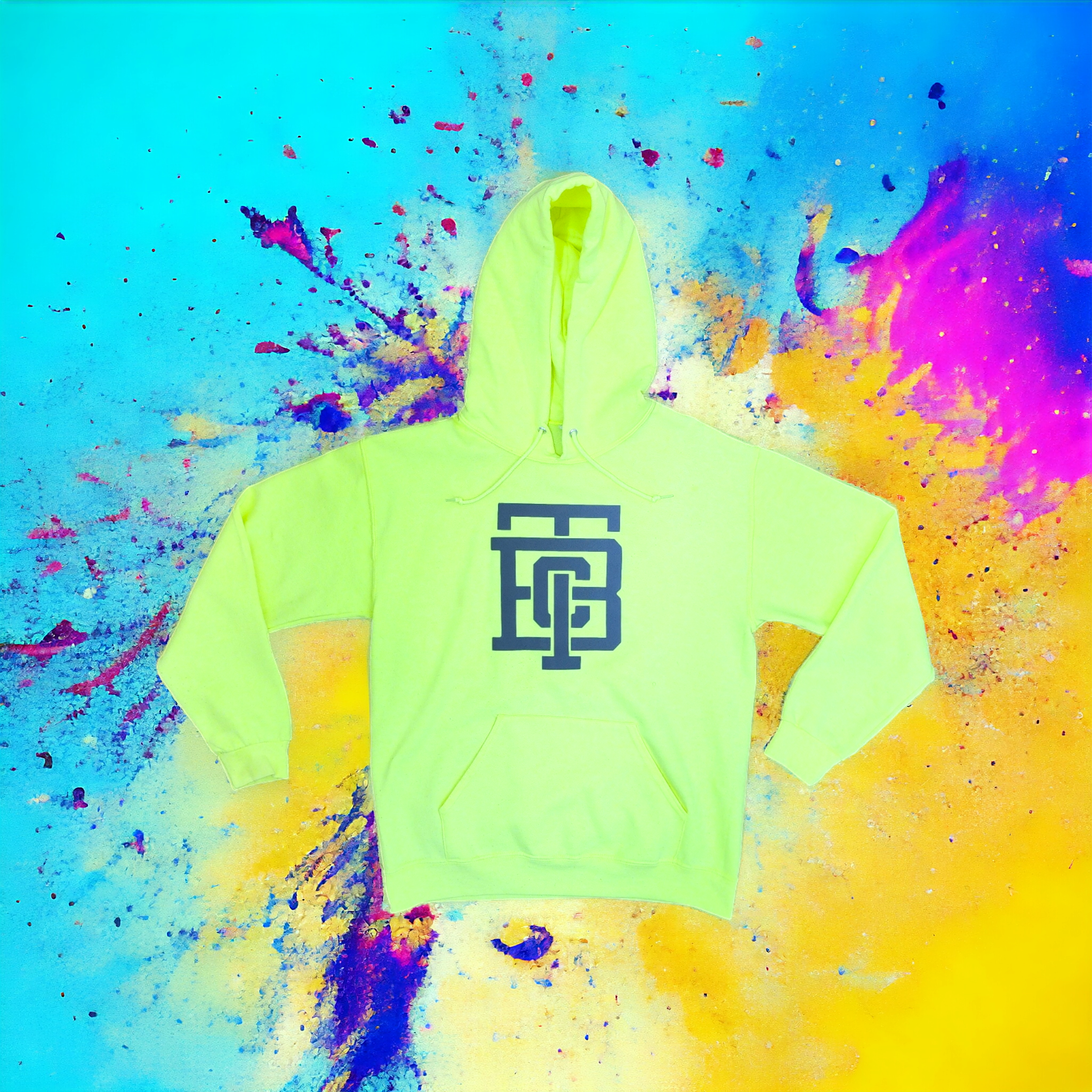 Unisex Yellow Reflector hoodie with a black reflector BTC Focused logo placed on the center of the logo.