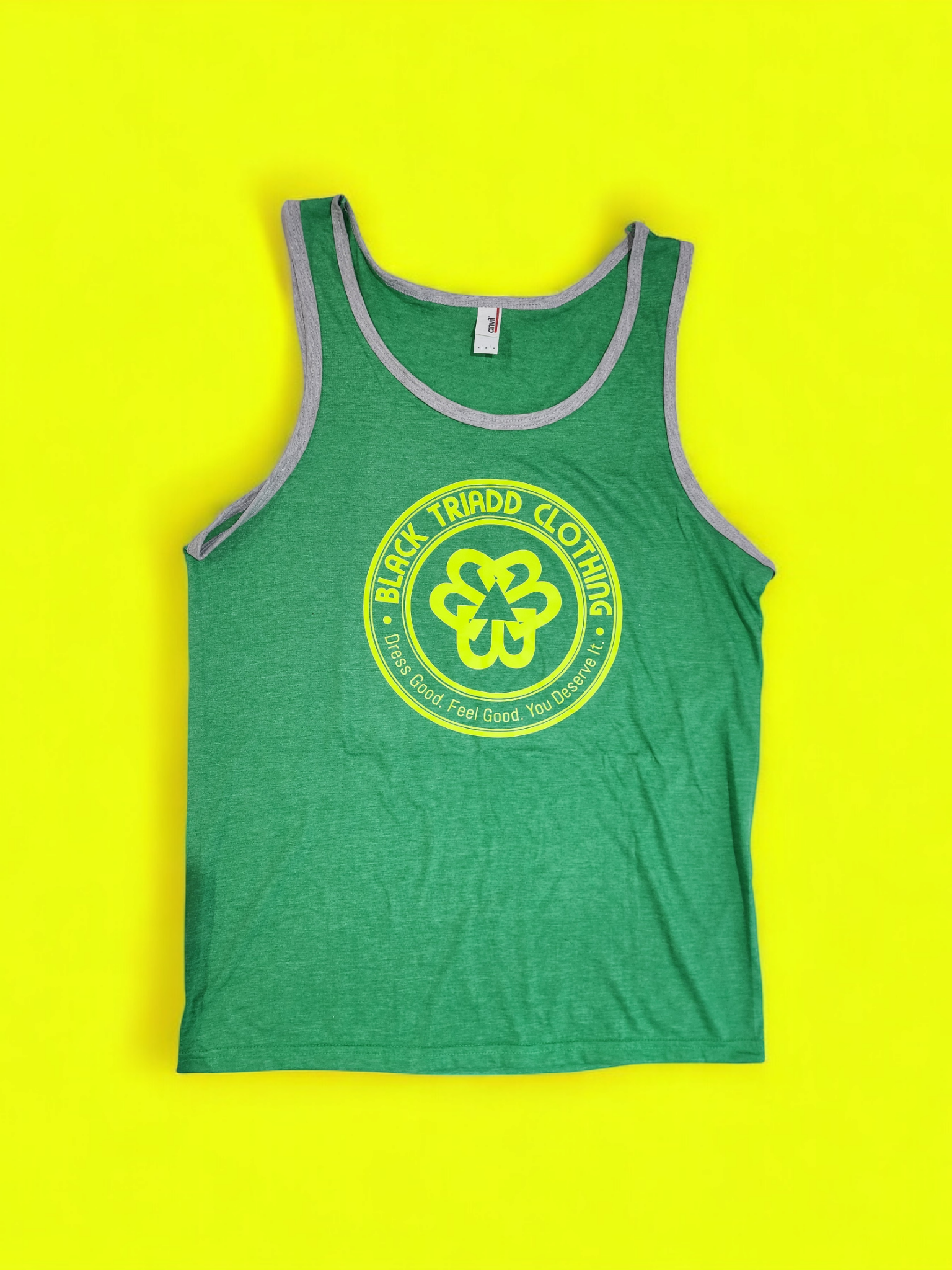 Green BTC Tank Top with a neon yellow BTC emblem logo placed in the center.